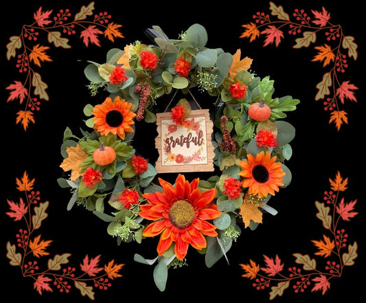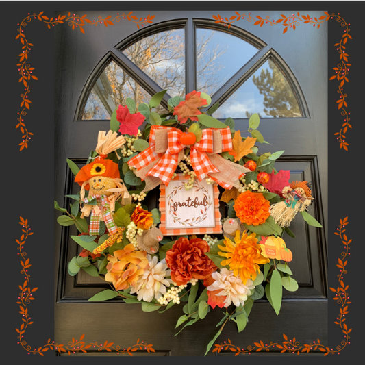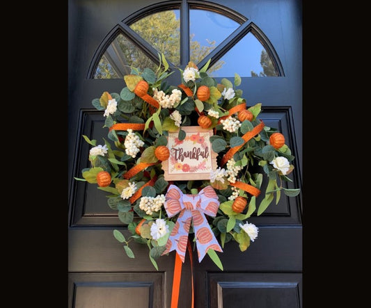 Thankful For Fall Wreath Kit With Glitter Pumpkins & Ribbon