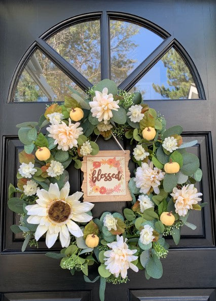 Blessed Antique White Multi-Flower with Pumpkins Wreath Kit
