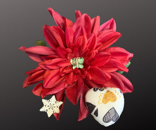 Red Dahlia With Interchangeable Magnetic Centers Featuring Valentines, Winter and Spring