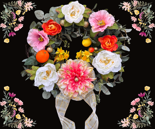 Speedy DIY Flower Wreath Kit Featuring Huge Double Layer Bow with Bonus Easter Decorations